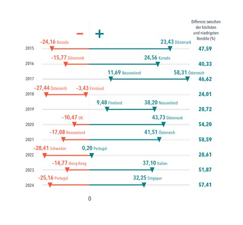 Spitzenreiter und Schlusslichter unter den entwickelten Märkten