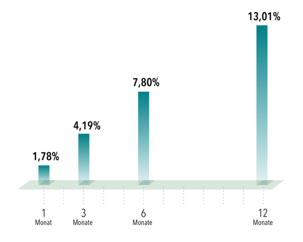 Die Abbildung zeigt die durchschnittlichen Mehrrenditen eines 60/40-Portfolios gegenüber einer Barmittel-Allokation nach einem dreimonatigen Kursrückgang am US-Aktienmarkt um 10 % oder mehr, Februar 1982 bis Juni 2025.